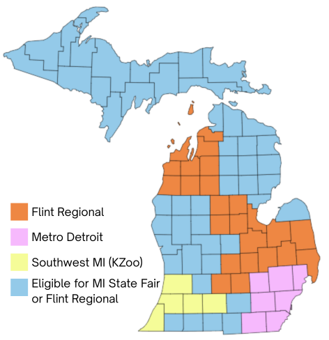 Students attending any public, parochial, private, or home school anywhere in the greater Mid-Michigan area (Antrim, Bay, Benzie, Charlevoix, Clare, Clinton, Eaton, Genesee, Gladwin, Grand Traverse, Ingham, Isabella, Kalkaska, Lapeer, Leelanau, Manistee, Midland, Missaukee, Saginaw, Sanilac, Shiawassee, St. Clair, Tuscola, and Wexford), or in any other Michigan county not served by an ISEF affiliated fair.